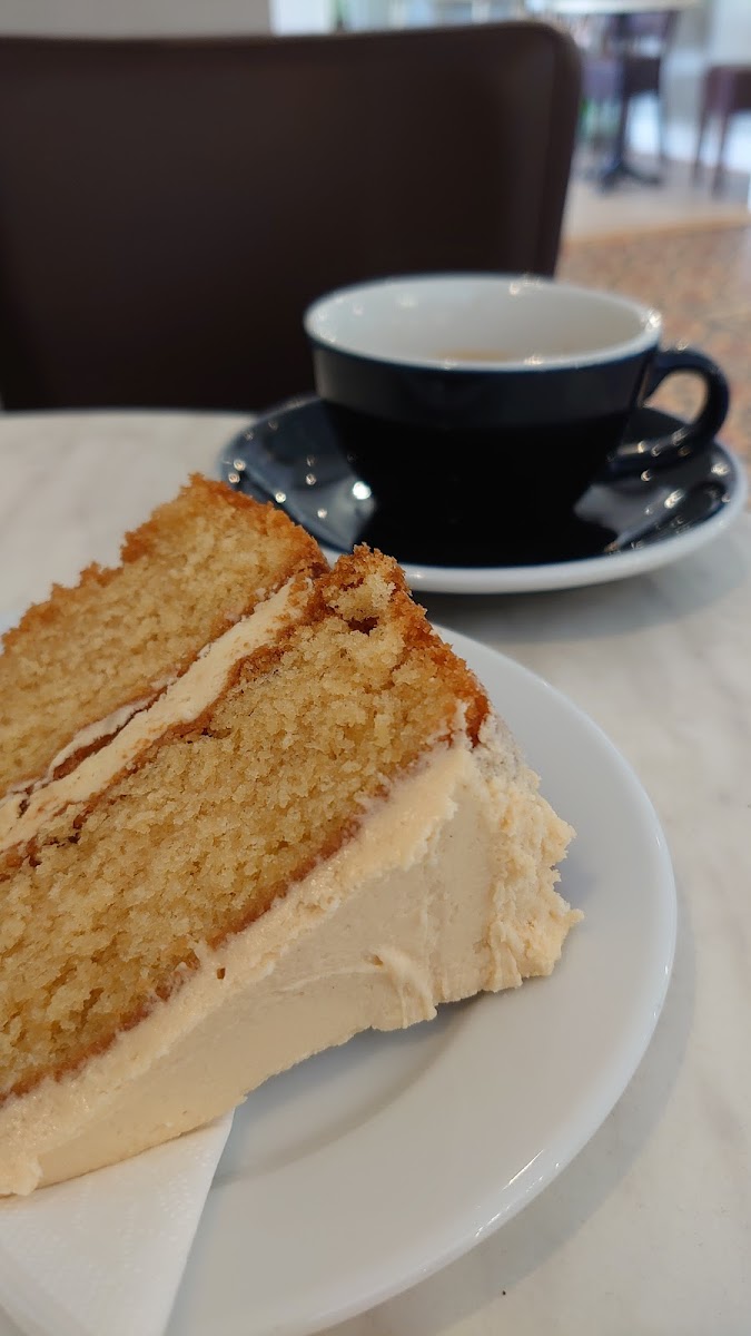 Such a wonderful spot for breakfast! We stopped here on our way back to London after a relaxing weekend in Wales, and it was definitely worth it. The coffee was excellent, the food delicious, and the staff were absolutely superb. They have inside and outside seating and also dogs friendly. We had coffee late with oat milk, eggs royal, avocado toast and carrots cake, all fresh and tasty, sorry was so hungry that totally forgot to take picture of food :) remembered as we ate last bites of carrot cake!